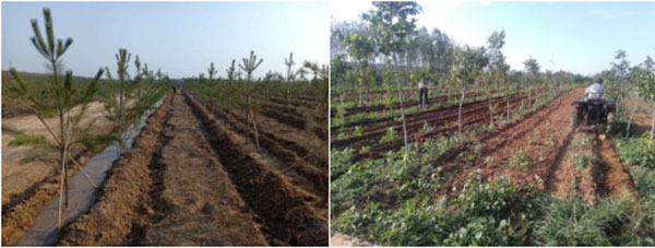 養(yǎng)護期的主要任務(wù)是澆水、除草、打藥及除蘗,養(yǎng)護期工作對新造林的成材極為重要,尤其前兩年的養(yǎng)護對人工林的整體成活率起著決定性作用。
