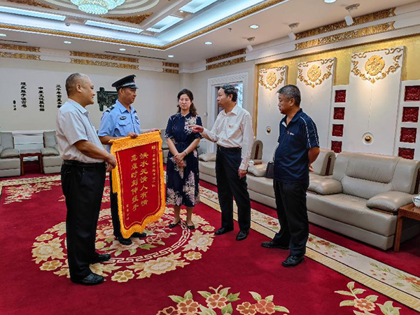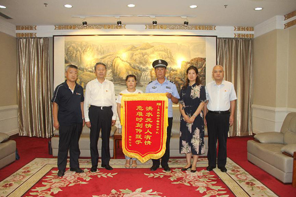 2021年7月28日下午3點(diǎn),“感謝你們,我這條命是你們撿回來(lái)的!”安勤公司員工曹運(yùn)玲拿著“洪水無(wú)情人有情,危難時(shí)刻伸援手”的錦旗在市黨政綜合大樓一樓會(huì)客室送到市黨政綜合樓保安中隊(duì)中隊(duì)長(zhǎng)戶永豐手中,感謝他們的救命之恩。安陽(yáng)市機(jī)關(guān)事務(wù)中心、三級(jí)調(diào)研員陳紹華,機(jī)關(guān)事務(wù)中心、保衛(wèi)科長(zhǎng)孫文勝;安陽(yáng)市安勤商務(wù)公司董事長(zhǎng)兼總經(jīng)理劉全喜,安勤商務(wù)公司副總經(jīng)理王軍;安陽(yáng)經(jīng)開集團(tuán)黨委委員副總經(jīng)理劉志霞;洹河保安公司黨委委員、副總經(jīng)理魏東,總經(jīng)理助理、人防分公司經(jīng)理李向陽(yáng),參加此次活動(dòng)。