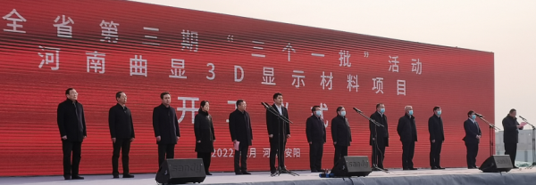 2022年1月4日上午,集團副總經(jīng)理溫惠玲陪同市委副書記、市紀委書記黃明海,市政府副市長王新亭,市政府副市長、安陽縣委書記王紅兵以及河南投資集團有限公司、市城鄉(xiāng)一體化示范區(qū)、東旭集團、新石器公司等相關領導前往示范區(qū)參加我市“三個一批”項目開工儀式。在開工儀式活動現(xiàn)場,黃明海書記宣布全市第三期“三個一批”活動暨河南曲顯3D顯示材料項目開工。