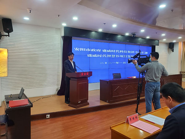 2021年1月13日上午,盛威時代智慧谷項目簽約儀式在市黨政綜合樓2樓第5會議室舉行,市政府、盛威集團、安陽戰(zhàn)新基金、示范區(qū)管委會、經(jīng)開集團等單位的主要領(lǐng)導參加簽約儀式。儀式由市政府秘書長李傳銀主持,常務副市長陳志偉代表市政府簽約,袁家健市長致辭,齊方董事長代表經(jīng)開集團出席簽約儀式。